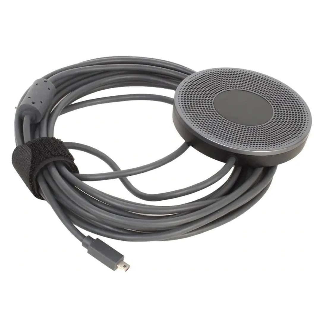 The Logitech Expansion Mic for MeetUp ConferenceCam is a plug‑and‑play accessory that improves microphone coverage in larger meeting spaces. While MeetUp’s built-in beamforming microphones perform well up to approximately 2.4 m, this expansion mic extends voice pickup to around 5 m—ensuring everyone is heard clearly, even in bigger rooms. It connects directly to the MeetUp device via its 6 m cable and is automatically recognized—no setup required.