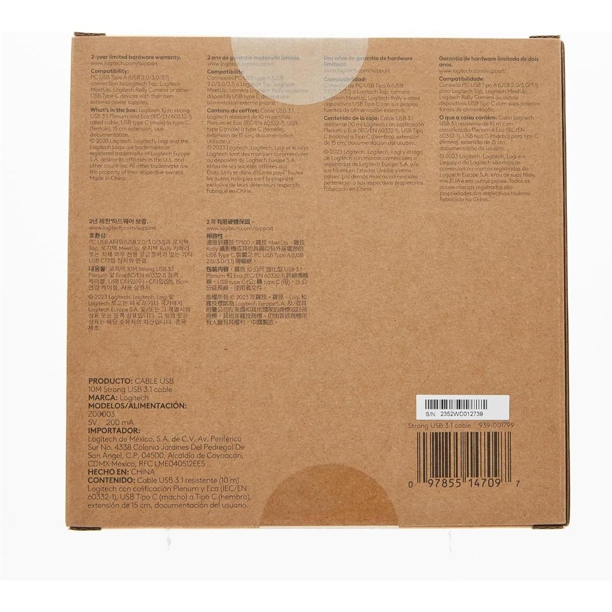 The Logitech Strong USB Cable (10 m) extends reliable USB connectivity for video conferencing systems and powered USB devices. Built using active optical technology, it supports up to 10 Gbps throughput compliant with USB 3.2 Gen 2, providing backward compatibility with USB 2.0, 3.0, 3.1, and 3.2 standards.